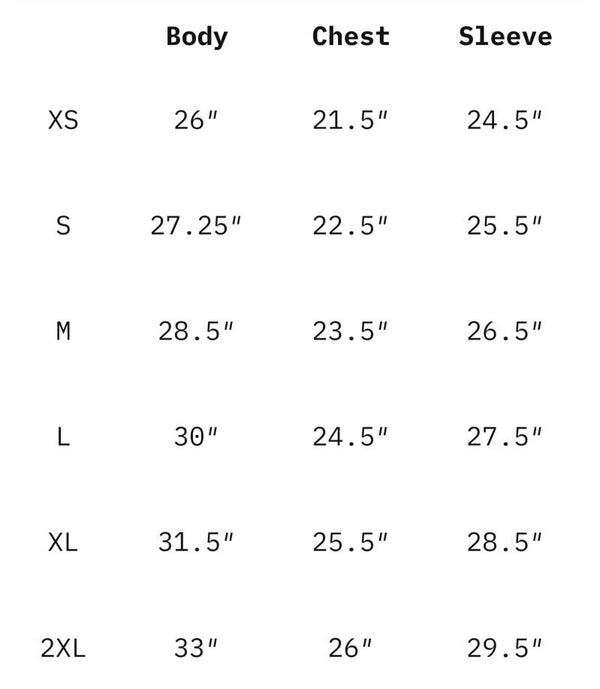- Size chart measurements are approximate & allow for +/- 1.5" variation