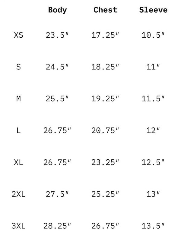 - Garment weight: 8 oz