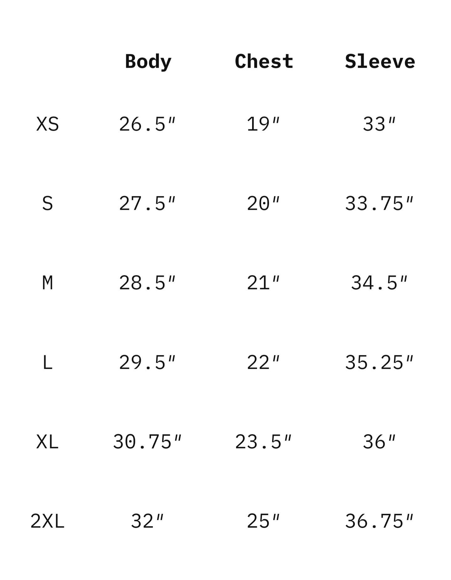 - Size chart measurements are approximate & allow for +/- 1" variation